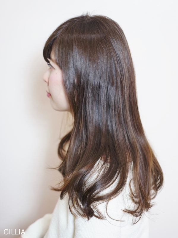 顔周りのレイヤーとゆるいパーマで女性らしく。GILLIAの低温デジタルパーマはダメージレス。艶のあるカラーで綺麗な髪をキープしませんか?